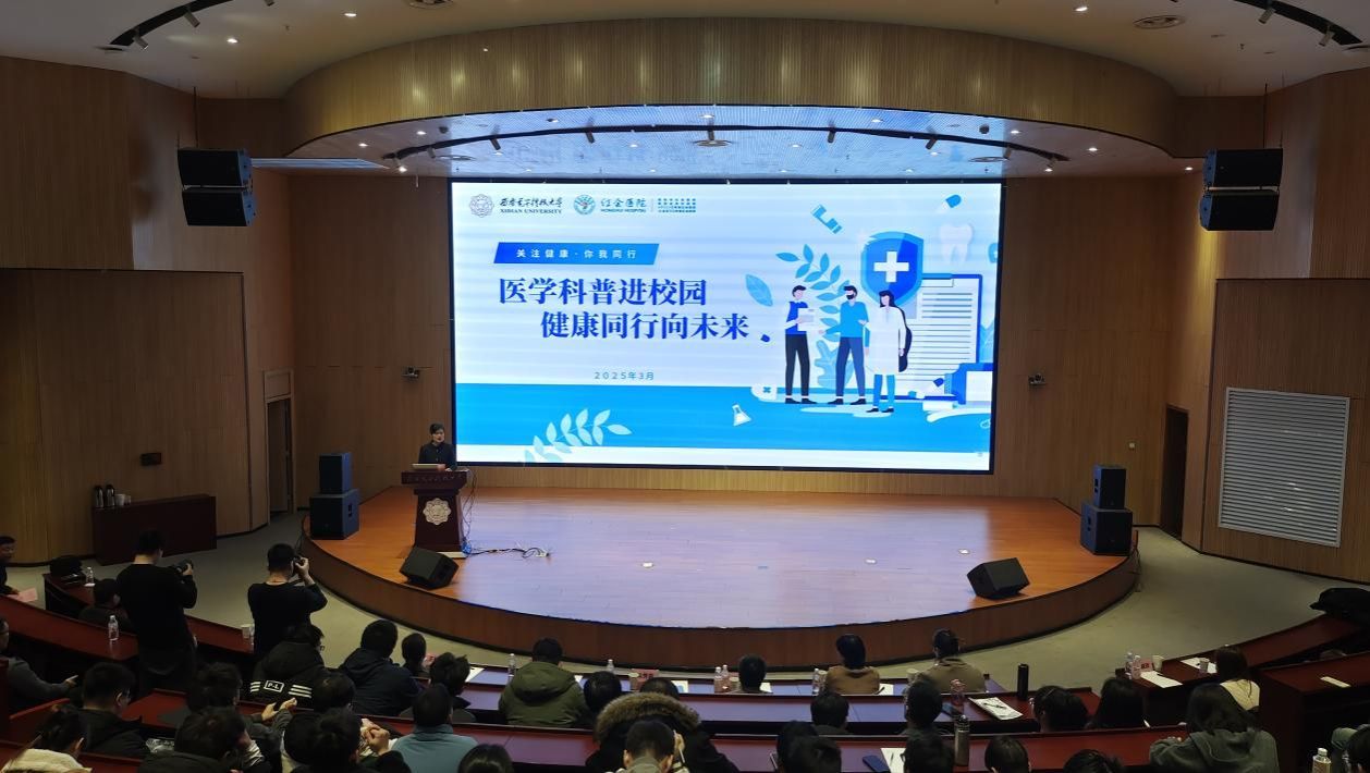 (通讯员 边晟世)为提升师生健康意识,普及医学知识,助力校园健康文化建设。3月7日下午,由校工会、西安市红会医院主办,太阳成集团tyc33455cc承办的“医学科普进校园 健康同行向未来”活动如期开展。此次活动特邀西安市红会医院权威专家团队,为师生们呈上一场兼具科学性与实用性、生动且有趣的健康知识盛宴。活动由数学与统计公司党委书记杨生海主持,公司百余名师生代表参加此次活动。
