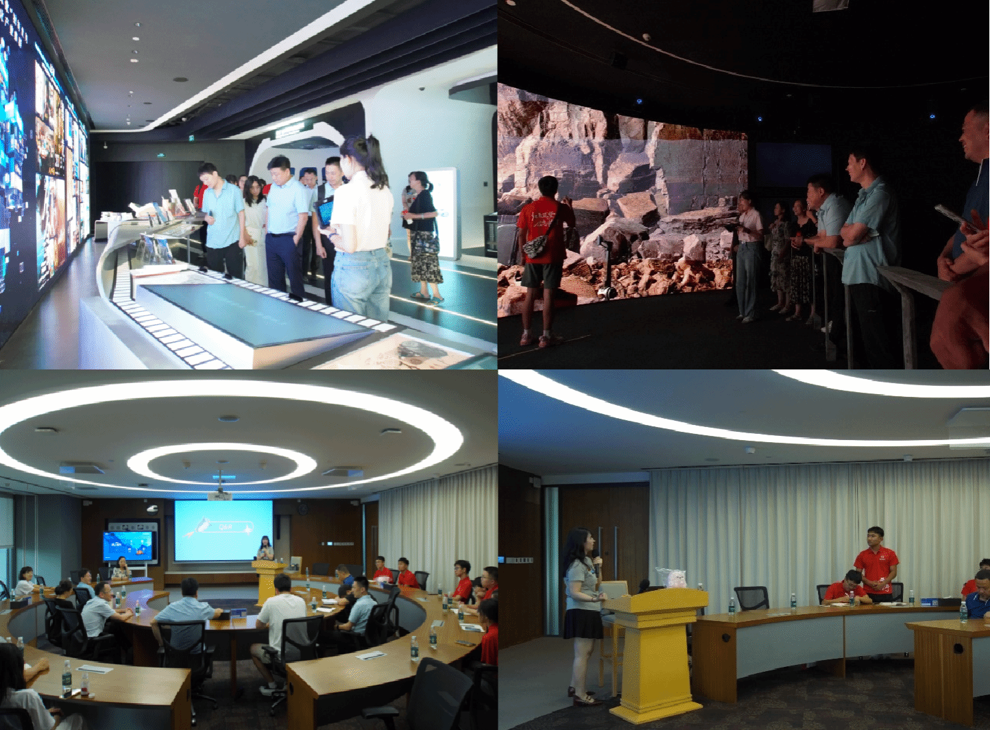 在深圳大学数学科学公司,双方就各自公司基本情况进行简要汇报,并在随后的交流环节,双方围绕“拔尖人才培养、团队队伍建设、员工就业服务”三大核心议题进行深入探讨。在西电广州研究院,实践队参观了广研院的学习生活环境,通过实物展品与影像资料,了解广研院从“筹建”到“落成”的历程,深刻体会“扎根大湾区、服务国家战略”的建设初心,了解了广研院“产学研用”的协同模式,随后双方在公司产品、团队建设、科研合作等方面进行了探讨。