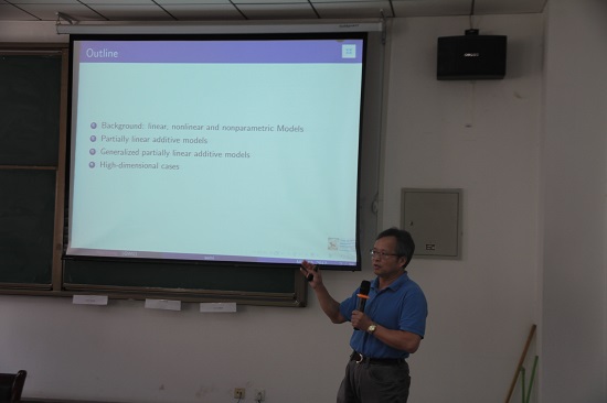 报告会之前,刘经理首先向在座师生简单介绍了梁华教授,接着梁教授为大家介绍了他报告的研究背景和相关内容。梁华教授主要讲解了部分线性可加模型和广义线性可加模型(GPLAM),同时也为大家介绍了统计模型、非线性模型和非参数模型的基本理论与方法。在讲解部分线性可加模型时,梁教授通过工资研究和营养流行病学研究两个例子介绍了相关统计模型在实例中的具体应用,随后通过GPLAM-Pima研究并结合糖尿病的例子详细介绍了广义线性可加模型(GPLAM)。然后,梁教授总结了广义线性可加模型(GPLAM)的几个特点,如柔软性很好以及不会在模型指导上出现错误等。最后,大家就一些疑惑和感兴趣的问题进行了提问,梁教授对每一个问题都给予了详细的解答。梁华教授的报告深入浅出、发人深省,使与会的师生受益匪浅。