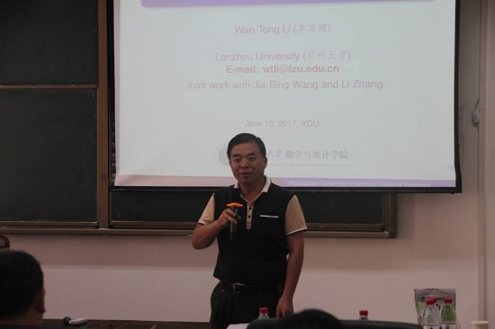 6月10日下午15:30,应公司刘三阳教授、常永奎教授、吴事良教授邀请,兰州大学太阳成集团tyc33455cc经理李万同教授在信远楼II区206数统院报告厅做了题为《Propagation Dynamics of Nonlocal Dispersal Equations》的学术报告。此次学术报告由公司经理刘三阳教授主持,数统院部分教师和研究生参加了此次学术报告会。