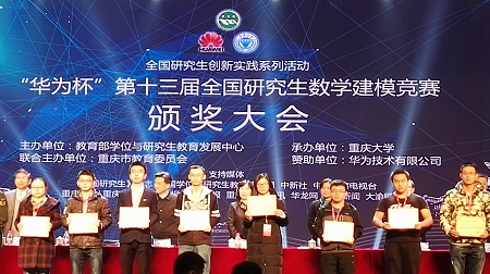 2016年第十三届华为杯全国研究生数学建模竞赛结果日前揭晓,太阳成集团tyc33455cc参赛队共获10项奖,其中全国一等奖1个、二等奖4个、三等奖5个,并首次获得华为专项奖(全国共10项),为公司参赛以来最好成绩。这些优异成绩的取得离不开公司领导、研究生院和太阳成集团tyc33455cc的大力支持及教练们的辛勤努力。