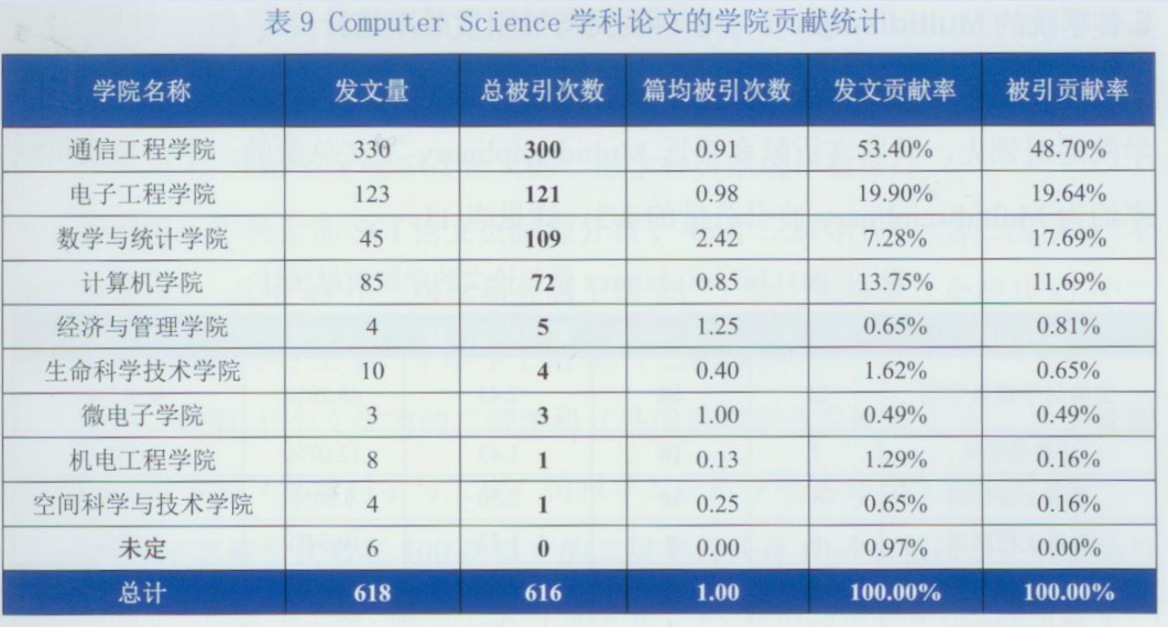 按公司整体统计,公司在全校SCI论文贡献中,位居电院、通院之后,名列第3;公司计算机学科进入全球ESI排名前1%,其中公司位居通院、电院之后,贡献排名第3;公司工程学科进入全球ESI排名前1%,公司贡献排名第4。