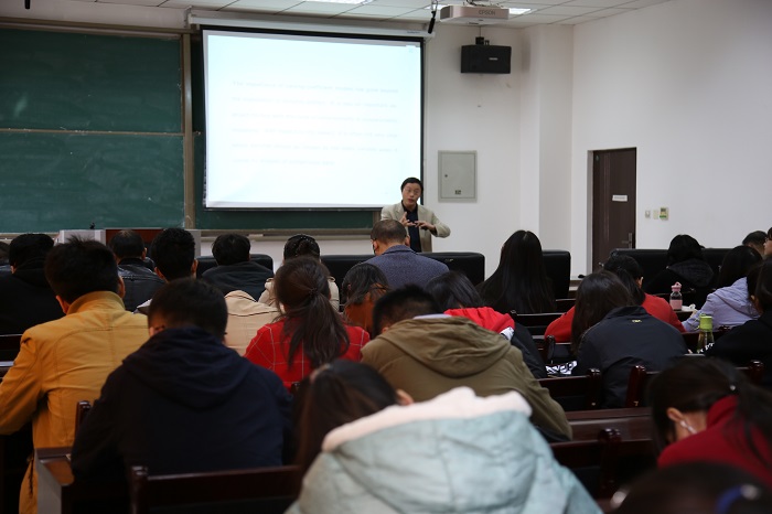 接下来张文扬教授在报告中讲述了在大数据时代模型选择的重要性,传统方法已经不再适用。然后,介绍了变系数模型的重要性以及其降维的优点。最后,张文扬教授通过具体的例子—Boston房价,概述了模型选择需要考虑的因素和变量并说明了迭代方法在模型选择的作用。在随后下午的学术报告中,张文扬教授介绍了协方差矩阵可以用于解决许多实际问题,例如投资组合的分配问题,但传统的一些协方差矩阵估计的方法存在不足,特别是高维协方差矩阵的估计更是存在元素多,误差大等问题。张教授提出引入动态结构到协方差矩阵中,并以投资组合为例详细讲解了具体的求解过程。