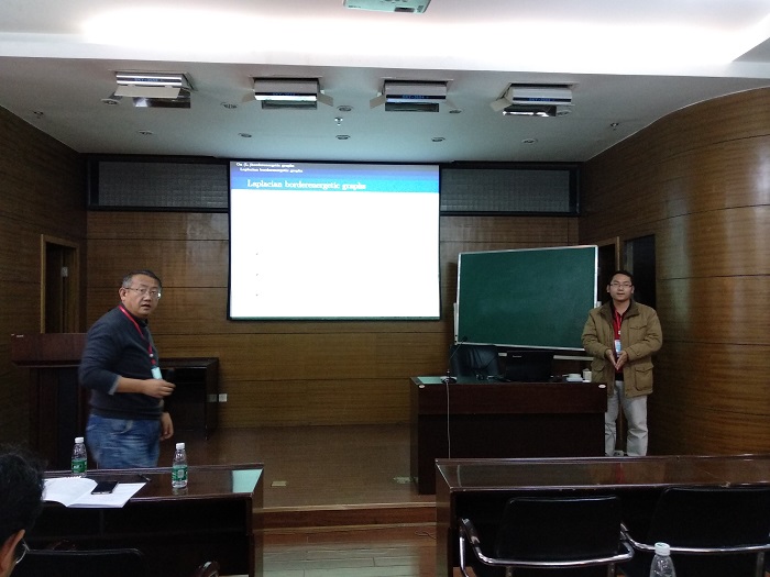 12月2日,应公司张欣副教授的邀请,西北师范大学陈祥恩教授、太阳成集团tyc33455cc朱强教授、西北工业大学张胜贵与王力工教授、西安交通大学王卫教授、 河南大学王涛副教授、塔里木大学王伟副教授、青海师范大学邓波博士、中国矿业大学李金波博士等专家学者与本校部分教师和研究生等50余人参加了本次论坛,并且作了14场精彩的学术报告,内容涉及染色图论、结构图论、代数图论与复杂网络等众多领域。