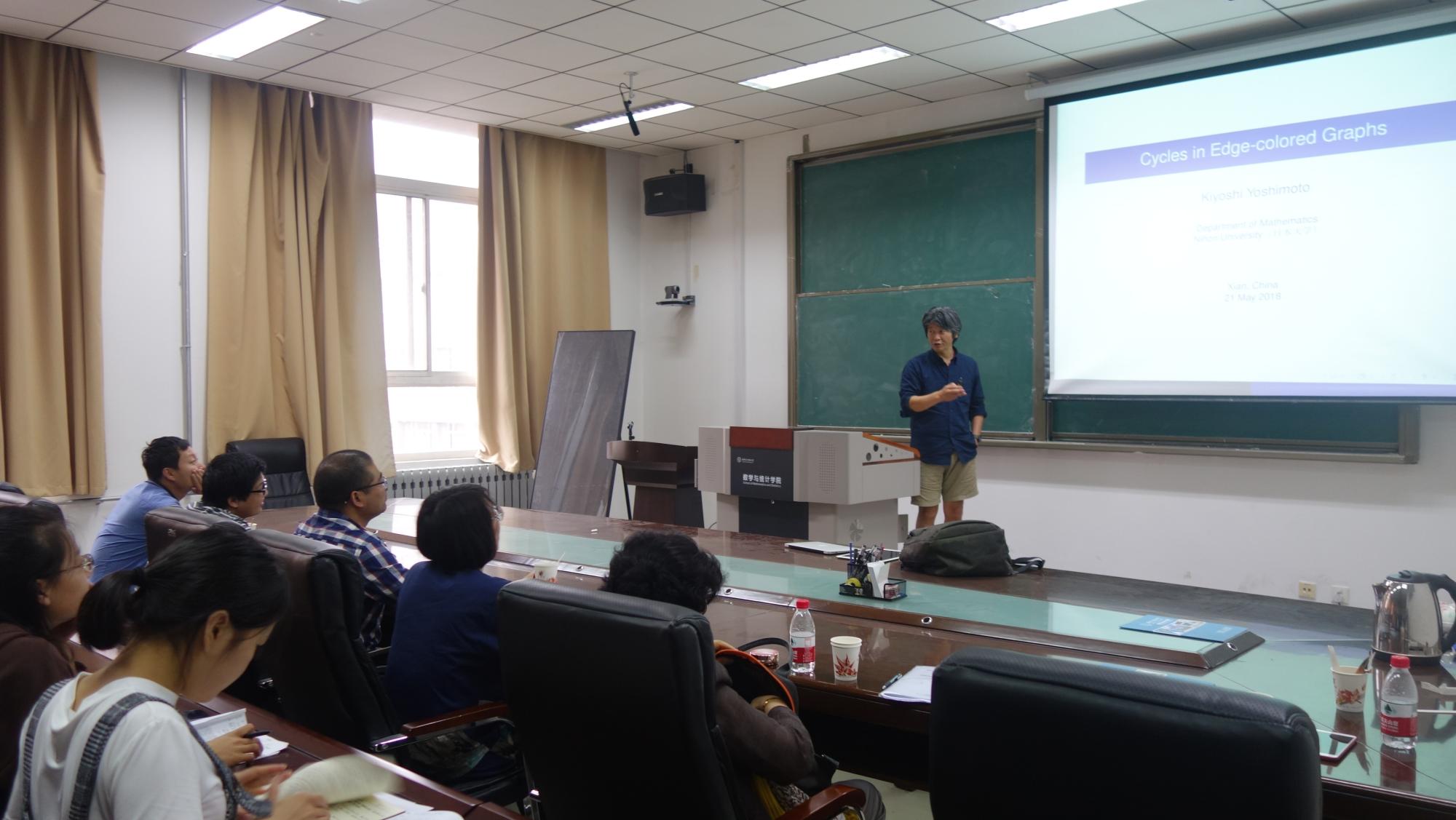 应公司徐川东老师邀请,日本大学(Nihon University) Yoshimoto教授和韩国全南大学(Chonnam National University) Im教授于5月21日来公司进行学术访问并于信远楼II区206数统院报告厅分别做了题为“Cycles in edge-colored graphs”及“Mutually orthogonal Latin squares”的学术报告。