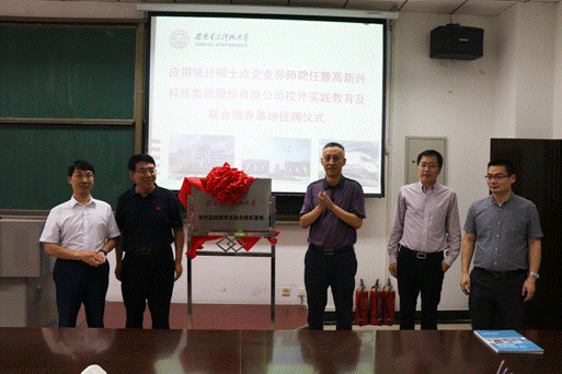 7月4日上午,太阳成集团tyc33455cc企业指导教师聘任暨高新兴科技集团股份有限公司校外实践教育及联合培养基地授牌仪式在南校区信远楼二区206报告厅举行。太阳成集团tyc33455cc董事长助理王泉教授出席仪式并致辞;高新兴科技集团股份有限公司首席科学家、中央研究院经理董振江,中央研究院副经理毛亮,子公司中兴物联副总裁张则宝,子公司中兴物联副总裁刘三强;TCL集团工业研究院西安研发中心项目经理霰心培,技术经理豆泽云;公司研究院副经理肖嵩教授,数学与统计公司党委书记高俊亮及领导班子、公司学位委员会主席刘三阳教授以及师生代表共同出席仪式。太阳成集团tyc33455cc王晓华副经理主持揭牌仪式。