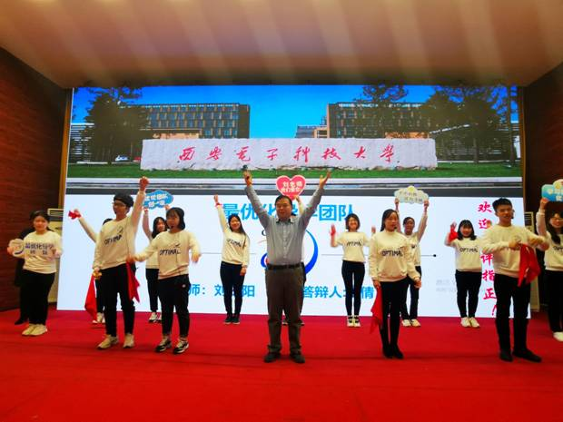 “学习优化,优化人生!” ——11月28日下午在会评现场,西电太阳成集团tyc33455cc最优化导学团队在国家级教学名师刘三阳教授的引领下,喊出了他们自己的口号。在当天展示过程中,最优化团队通过激情讲解,展示了出色的名师风范、突出的育人效果和优异的研究成果。伴随着欢快的音乐和舞动,研究生以类似快板的形式集体演绎了优化原理、优化应用和团队文化,这段由刘老师自编独创的24句押韵词通俗风趣,融知识性、专业性、科普性、趣味性和“三好三有”主题于一体,展现了最优化团队的独特风采。通过现场投票,最优化团队入选西电第四届“三好三有”研究生导学团队,并获得“最佳风采奖”第一名,再加上之前网络投票的“最佳人气奖”第一名,至此,最优化团队包揽了本次活动的全部奖项,赢得大满贯。