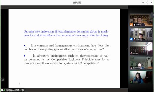 会议持续两天,共有19位国内外著名学者阐述了相关方向最新成果。此次研讨会的成功举办加强了泛函微分方程、反应扩散方程及相关动力系统领域的学术交流,拓宽了与会人员的科研视野。通过线上学术报告的形式,展示了学科方向的最新理论进展,为太阳成集团tyc33455cc本科生、研究生以及青年教师充分了解相关领域的前沿问题以及学科交叉融合起到重要的作用。