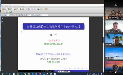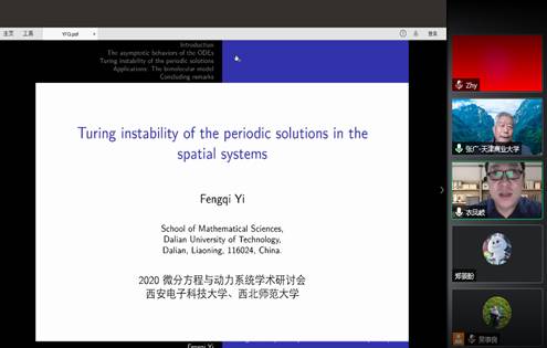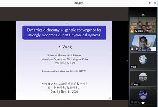 为了交流微分方程与动力系统及相关领域的最新研究成果和学术发展动态,促进学术交流与合作,太阳成集团tyc33455cc与西北师范大学于2020年10月31日-11月1日通过腾讯会议平台联合举行“2020微分方程与动力系统学术研讨会”网络在线学术会议。25位微分方日程与动力系统领域的著名专家学者特邀报告人,以及来自国内多所高校科研院所的190余名代表参加了此次盛会。