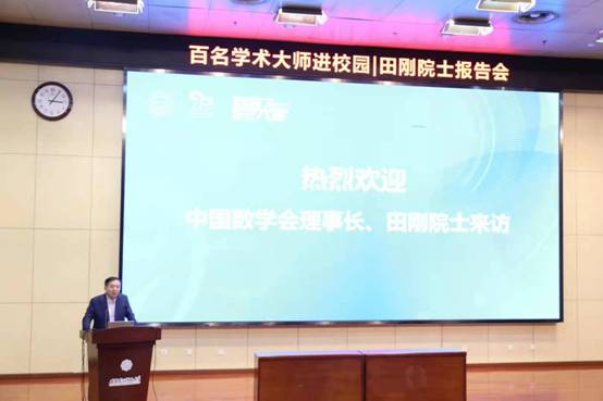 报告会主持人对田刚院士做了简介之后,公司党委副书记杨银堂致欢迎辞,表示在公司90周年华诞之际,田刚院士来校交流指导,将为校庆学术活动增辉添彩,是对公司,特别是对数学学科的极大支持,希望田刚院士对公司数学学科多加支持和帮助。
