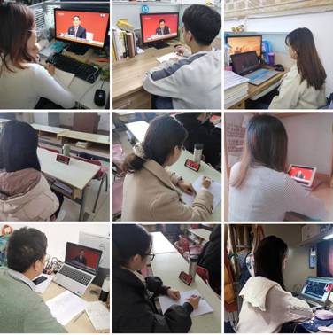 (通讯员:陈谌)党的十九届六中全会于11月8日至11日在京召开,深入学习宣传贯彻党的十九届六中全会精神是一项重大政治任务。身在各处的数统院师生于11月12日上午10时锁定同一频道通过线上与线下相结合的形式集体收看新闻发布会直播。此次学习活动共设两个线下会场,分别在信远206报告厅和220西会议室。信远206与会人员有公司领导、两委委员、系主任、全体党支部支委会成员以及部分员工代表共30余人,本科生党支部全体党员在220西会议室集体学习。教工党支部以及硕士和博士党支部同志线上自行观看。