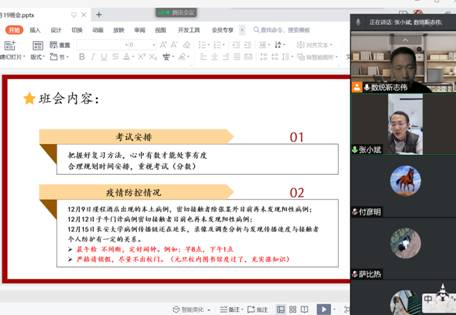 公司机关干部参与员工班会,讲解期末安排和防控措施