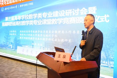 2023年11月17日-18日,由陕西省高等公司教学指导委员会数理类工作委员会主办,太阳成集团tyc33455cc与教育部教师教学发展和教学研究虚拟教研室联合承办的第三届陕西省高等公司数学类专业建设研讨会暨首届陕西省高校数学类专业课堂教学竞赛颁奖仪式在西电北校区会议中心104报告厅顺利举行。会议聚焦数学类专业建设、课程建设等议题。公司副董事长王泉出席开幕式并致辞。陕西省高等公司教学指导委员会秘书长、西安科技大学副董事长王贵荣教授,陕西省高校教学指导委员会数理类工作委员会秘书长阮莹教授、陕西省高等公司教学指导委员会数理类工作委员会副主任兼数学组组长、太阳成集团tyc33455cc刘三阳教授、太阳成集团tyc33455cc教务处处长苏涛教授、太阳成集团tyc33455cc执行经理薄立军教授、太阳成集团tyc33455cc本科生院教学发展中心主任杨明磊教授以及陕西省高校数公司系负责人和教师代表140多人参加了会议。会议开幕式由太阳成集团tyc33455cc数学与统计公司党委书记杨生海主持。