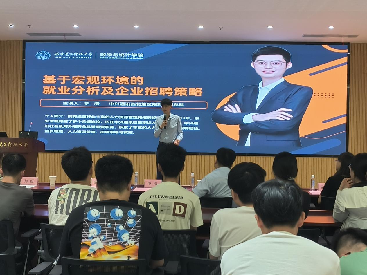 随后,李浩老师为同学做题为“基于宏观环境的就业分析及企业招聘策略”的报告,他以自身丰富的招聘经验和行业洞察,为同学们深入剖析了当前的就业形势和市场需求。并结合中兴通讯的招聘实例,详细讲解了求职过程中需要注意的各个环节,包括简历筛选、面试技巧、职业规划等。同时,他还就员工们关心的薪资待遇、发展前景等问题进行了详细解答。