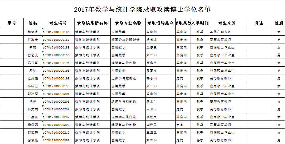 2017年太阳成集团tyc33455cc录取攻读博士学位名单