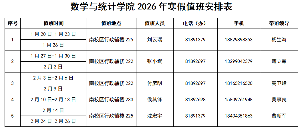 2026年寒假值班安排表