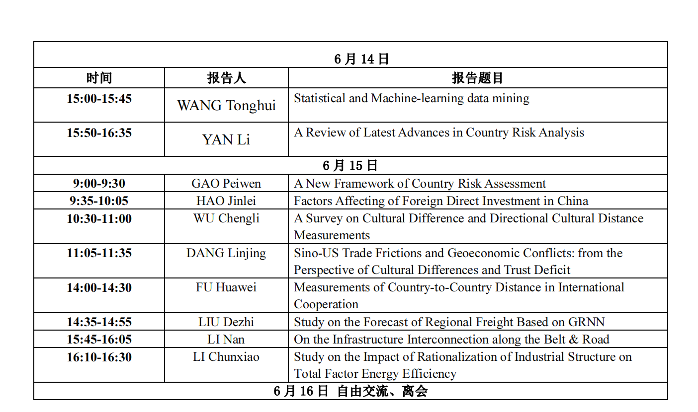 全球化是人类发展的大趋势,国际合作交流、经贸往来各方都是受益者。然而随着西方经济衰退,贸易保护主义迅速抬头,地缘经济取代地缘政治,支配着当今世界的格局变化。“一带一路”倡议为沿线国家带来新的发展契机,然而恐怖主义、文化风险、颜色革命等不确定性都给中国投资者及合作伙伴带来巨大的风险 – 国家风险。为了促进国内外国家风险分析领域的学术交流与合作,为了提高“一带一路”沿线国家风险的研究和预警能力,太阳成集团tyc33455cc将于2018年6月14日(星期四)至16日(星期六)在太阳成集团tyc33455cc举办“International Symposium on Country Risk Analysis”国际学术研讨会。届时将有多位国内外经济金融、项目管理、数学统计等领域的专家学者进行演讲交流。我们诚挚邀请国内外经济管理、国际政治、跨国文化、数学统计及计算技术领域的学者莅临出席参与交流。