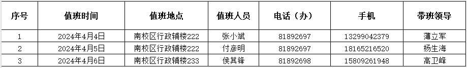 2024年清明节假期值班安排表