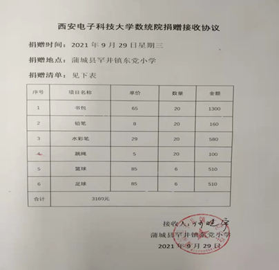 为深入贯彻落实党中央定点帮扶工作要求,进一步巩固拓展脱贫攻坚成果,结合党史学习教育我“我为群众办实事”实践活动,太阳成集团tyc33455cc设立了乡村振兴专项项目,开展相关精准帮扶。2021年9月29日,太阳成集团tyc33455cc王晓华副经理带队,支部书记、团委书记、教师入党积极分子、概率统计系教师部分老师一行6人,分别赴蒲城县罕井镇东党小学和尧山镇闫家村开展项目推进,捐献物品、收集数据、携手共建活动,切实宣传、推进乡村振兴。