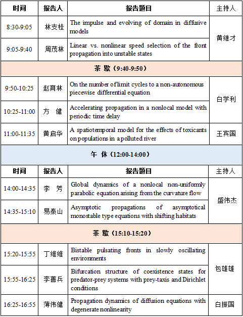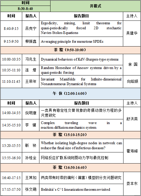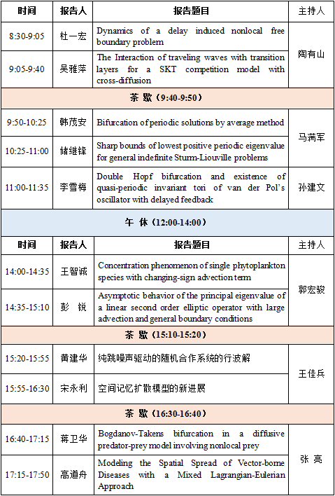 本次学术会议旨在邀请微分方程与动力系统及相关领域专家学者分享最新研究成果,进一步探讨微分方程与动力系统中的前沿问题,促进学术交流与合作。学术会议的主题涉及时滞微分方程、反应扩散方程、动力系统等相关领域。
