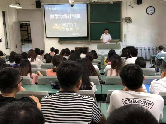 9月2日下午,2019级博士、硕士研究生新生入学教育在南校区阶梯教室A109举行。数学与统计公司党委书记高俊亮、经理马如云、副经理吴事良,副书记王佩、研究生辅导员孙群老师以及2019级全体研究生新生参加了此次会议。大会由研究生辅导员孙群老师主持。