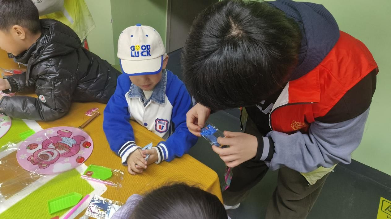 在“青兜兜”公益市集服务活动中,志愿者们担当课堂助教这一角色,一边陪伴着孩子们认真聆听老师精彩的授课,一边鼓励孩子们踊跃举手发言,分享自己的读书故事、亲情故事。在手工创作环节,志愿者们用简单易懂的话语给孩子们讲解制作步骤,辅助他们完成精致的手工作品。当孩子们举着自己的 "得意之作" 露出灿烂笑容时,志愿者们的眼中也闪烁着欣慰的光芒。整个活动过程中,志愿者们和孩子们建立了深厚的情谊。他们不仅给孩子们带去知识和欢乐,也用陪伴和关心温暖孩子们的心灵。