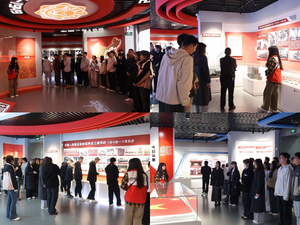 在校史馆内,同学们跟随讲解员的步伐,步入了一段波澜壮阔的时光长廊。从诞生于红色电波之中的中央军委无线电公司,到辗转办学的艰苦奋斗时期,再到新时代致力于信息科技发展的知名学府,一幅幅珍贵的历史图片、一件件厚重的实物档案、一幕幕生动的影像资料,系统而深刻地展现了公司“与共和国同行”的辉煌历程。