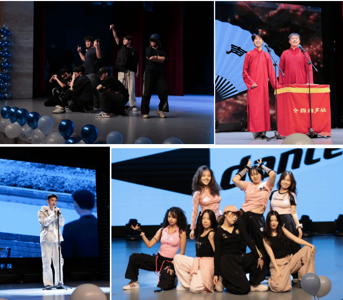 节目展演环节亮点纷呈、异彩纷呈。《街舞 uptown funk》拉开第一幕 “逐光” 的序幕,舞者展现的稳健有力托马斯全旋,瞬间点燃全场热烈氛围,用动感舞姿诠释青春的炽热光芒;紧随其后的《荣耀向我俯首》,旋律激昂嘹亮,歌声中满是青春的炽热锋芒,传递出数统学子的昂扬斗志。《bangbang》以清亮婉转的反串歌声引发全场拍手应和,独特演绎让人眼前一亮;《至少还有你》的深情演唱动人心弦,细腻的情感表达收获持久热烈掌声;《恋爱告急》的淡雅舞姿整齐优美,结尾的比心互动获赞无数;相声《数统人的日常》幽默还原数统学子的校园生活,笑声与掌声在剧场内交织不断;《少年游》以轻快旋律勾勒出意气风发的模样,唤醒在场观众的校园青春记忆。
