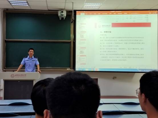 报告会伊始,蔡警官介绍了南校区自2020年七月至今的电诈案发生情况,随后借助生动的案例分别介绍了虚假购物诈骗、冒充客服诈骗、老师、领导诈骗、刷单返利诈骗、裸聊诈骗、冒充“公检法”诈骗、注销“校园贷”诈骗、虚假投资理财诈骗、“杀猪盘”诈骗、冒充港澳台交换生诈骗、宿舍推销、发展代理诈骗等十几种常见电信诈骗。随后蔡警官向同学们宣传了“三不一多”原则:即未知链接不点击,陌生来电不轻信,个人信息不透露,转账汇款多核实。最后蔡警官展示了几个校园内外的监控录像,强调了道路交通安全的重要性,借此引起同学们的重视,提高安全意识。