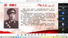 会议第二项由太阳成集团tyc33455cc硕士生2019级党支部全体党员进行“学四史,网上重走长征路”有关的人物事迹或景点分享,此次分享由线上线下两部分组成,在校同志集中在信远二区220会议室,实习同志通过线上分享。