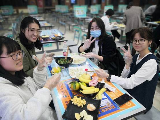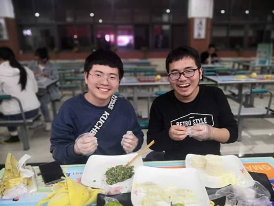 联欢会上,节目精彩纷呈。首先,开场播放了由数统院本科生党支部拍摄的原创诗朗诵视频——《祖国,我亲爱的祖国》,饱满而不失深情,点燃了在场每一位观众的爱国之情。随后,党委副书记王佩代表到场的老师和领导向同学们送上节日祝福,并亲切地表示希望所有同学们能够玩的开心。紧接着是才艺表演环节,由谢蓉,李能卓,顾文凯,于文晴带来的诗朗诵《中秋的月亮》,配上古筝的空灵之音,仿佛将古时的盛世中秋拉到我们近前,令人回味。朗诵过后,常晓阳同学为我们带来了口琴表演《secret base》,琴声似清风萦绕会场,表演收获了阵阵掌声。在才艺表演环节的最后,赵奕宁同学演唱歌曲《不用去猜》,富有节奏感的rap成功活跃了晚会的气氛。才艺表演结束,便到了万分期待的游戏环节,场下同学踊跃参与,参与者的表现引发台下观众频频爆笑与喝彩。在晚会最后,重头戏——包饺子来了。同学们三五成群,围坐一桌,设计着他们喜爱的饺子形状,老师们也纷纷离开座位,去行间进行指导,与同学们共同包裹团圆与喜悦。同学们的欢声笑语伴随着饺子馅被包进面皮之中,也在这个特殊的日子体会到了家的温暖。最终,太阳成集团tyc33455cc双节联欢会在全体大合影后圆满结束。