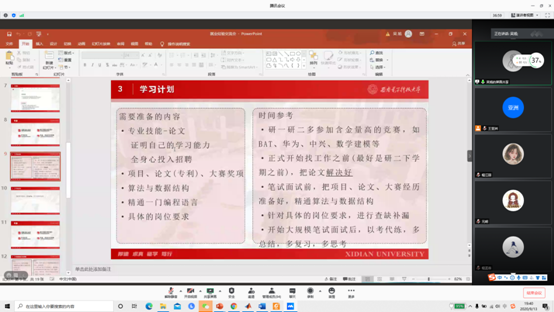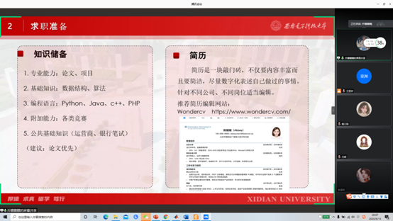 就职于华为的吴旭从招聘信息来源、岗位对应技能要求、学习计划以及笔试、面试注意事项四个方面展开,向参与会议的同学们分享了他的心得体会。同时也回答同学们的一些问题,传授了笔试时的一些经验。