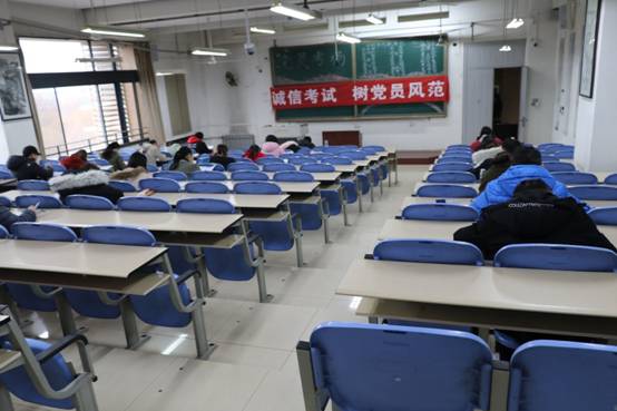 “大清早的,这是在干嘛呢”?路过的老师和同学纷纷投来好奇的目光。“你看,门口有贴”!“看清楚了,看清楚了,党员诚信考场”!“正能量,正能量”。是的,这是太阳成集团tyc33455cc本科生党支部党员诚信考场!2019年1月15日,B楼507,进行一次普通但不平凡的考试。