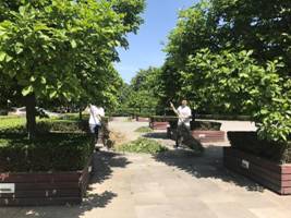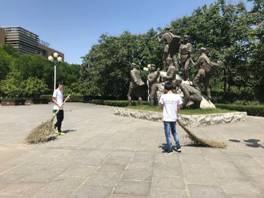 本次实践活动是清扫公司卫生责任区,同学们纷纷穿上了数统院文化衫,文化衫是公司为了同学们统一实践活动特意定做,阳光下胸前彩虹色的公司图标飞扬飘洒。同学们分工明确各司其职,在尘土飞扬中,感受着劳动的快乐。