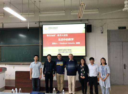 5月15日下午,俄罗斯科公司Steklov数学研究所Vladimir Vatutin教授应邀在B105教室为太阳成集团tyc33455cc师生作了题为“生活中的数学”通识性学术报告。此次报告为数统院“数往知来”数学大讲堂系列活动的首场,报告会由靳志伟老师主持,乌克兰基辅大学教授Igor Samoilenko、数统院经理马如云教授、公司党委副书记王佩、概率统计系副教授董从造等出席了本次活动,一百余名数统院本科生聆听了此次报告会。