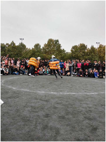 此次运动会有8人持竿蛇形往返接力,20米足球绕杆接力,篮球运球上篮接力,拔河,双人40米跳绳接力赛,集体跳大绳,50米绑腿同行比赛,30人*60米穿梭接力,相扑擂台表演赛。每一个项目都在考验同学们的团结合作能力与大家的运动素质。