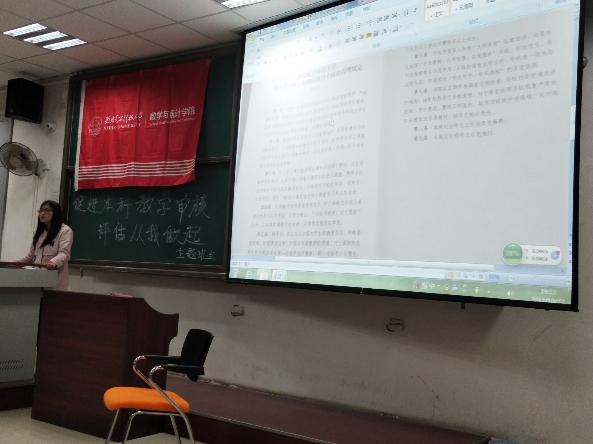 会上本科生辅导员老师靳志伟靳老师和研辅常老师带领同学们认真学习了《本科教学审核评估师生应知应会知识汇总》的相关内容知识,对文件内容作了简要的解释说明,并强调指出同学们要认真严肃地从容对待此次审核评估工作,严格遵循课堂纪律,注意礼仪规范,对文件知识内容做到心里有数,全面深刻理解基础知识。