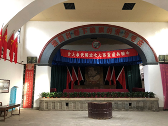 在这里,伟人们的窑洞故居依然保存完好,我们看见了毛泽东、朱德、周恩来等领导同志们当年的住所,走进毛主席曾经居住的窑洞,入眼的只有一张床,一张桌,除了必用的生活用品外再无其他,伟人居住过的地方居然是这样的简陋。这种艰苦奋斗的延安精神仿佛刻进了延安的一草一木,在老区人民的生活中一代代传承。在杨家岭革命旧址中,我们还有幸看见了曾经的中央大礼堂,当年的第七届全国人民代表大会就是在此召开的,岁月荏苒,现在的我们也只能通过大礼堂旁附有的图片,瞻仰第七届大会的盛况了。