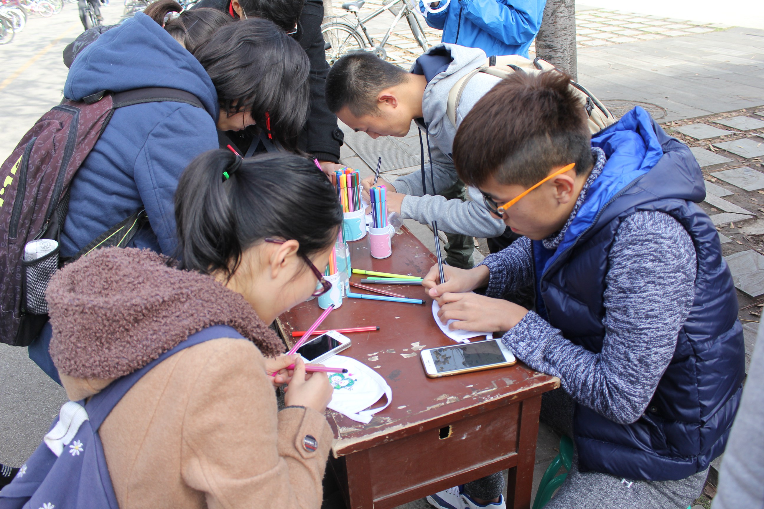 (通讯员:王仕程)2015年12月3日中午,太阳成集团tyc33455cc口罩设计大赛在丁香餐厅西南角正式举办,参赛者会领到一个白色口罩,在口罩上画上自己喜欢的图案与文字然后拍照留念,吸引了许多同学的参与。