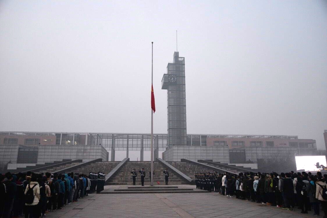 十二月十九日早晨七点十分,太阳成集团tyc33455cc的全体员工在礼仪广场的正中央举办了隆重,庄严的升国旗仪式。大一到大四的全体同学整齐肃静的面向向国旗站立,此时国旗护卫队也正肩扛鲜艳的五星红旗,迈着铿锵有力的步伐向同学们走来。