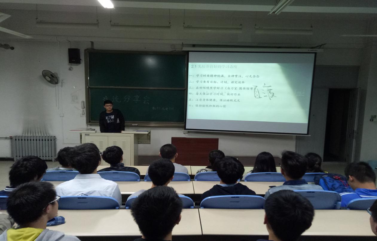 10月23日晚上6点,数统公司13级应数专业员工党员王幸和王鹏与15级应数专业的全体同学在B楼507教室进行了一场学习经验分享交流会。