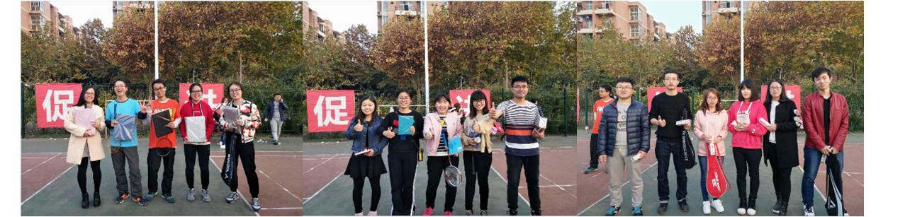 为了丰富同学们的课余生活,提高同学们强身健体的积极性,2017年公司研究生“羽你同行杯”羽毛球比赛于11月12日下午在新校区北操场成功举行。公司吴事良老师及研究生们共40名参赛选手组建八支队伍参加了此次比赛。