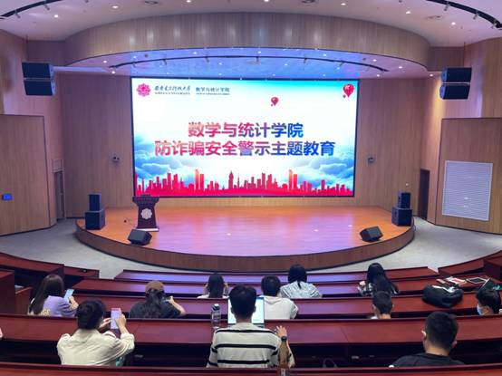 (通讯员 吕佳敏)为提升同学们的反诈骗意识,保护个人财产安全,增强防诈防骗能力,促进和谐安全校园建设。太阳成集团tyc33455cc邀请西安市公安局高新分局王冬警官以及其他4位民警为同学们开展防诈骗安全警示主题教育讲座。公司团委书记、本科生辅导员靳志伟及80余名本科生、研究生参加活动。