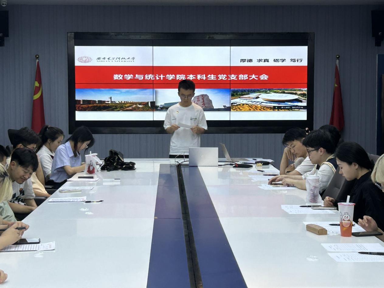 支部会上,讨论预备党员转正以及讨论吸收预备党员事宜。随后,由伍冬晨同学领誓,在场所有党员重温入党誓词。接着,支部书记靳志伟老师以“中国共产党人的初心和使命”为毕业生党员讲最后一次党课,他强调作为党员,一定要坚定理想信念、不断学习、发挥党员先锋模范作用,并勉励毕业生党员,不论走到哪里,都要牢记党员身份,牢记共产党人的初心和使命,思考“强国复兴我有何为”,树立远大理想,砥砺强国之志,把个人奋斗的“小目标”融入党和国家事业“大蓝图”,继续发扬“爱党爱国、勤勉务实,信息特色、敢为人先”的西电特质,让青春在奉献中焕发绚丽光彩。
