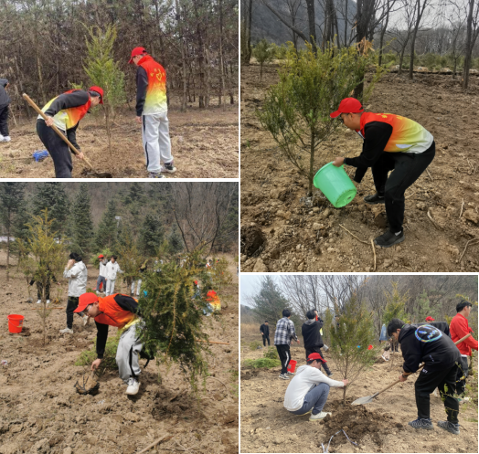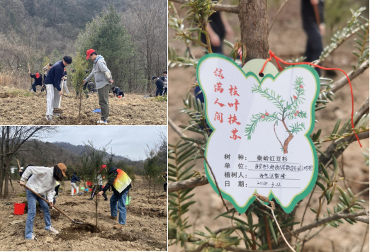 春风催绿新,植树正当时。3月12日下午,本科生党支部书记靳志伟、党支部副书记赵春霞、以及42名本科生党员和积极分子一同来到秦岭红豆杉基地,志愿者们身穿醒目的志愿红,满怀热情,分工明确,配合默契。秦岭违建警示教育中心耿书记现场给大家进行了任务分工,党员们两人一组,挥锹铲土、挖坑围堰、扶木正枝、踩土定基,每一道工序都认真细致,每一个动作都充满力量。经过一下午的辛勤努力,几十棵树苗在志愿者们的精心呵护下,顺利扎根于秦岭的沃土之中。新栽种的树苗迎风而立,绿意盎然,错落有致,为这片土地增添了一道亮丽的绿色风景线。